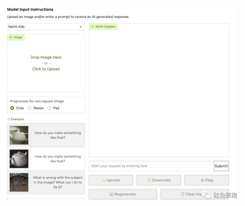 在多模态应用领域,大部分精力都花在构建更好的模型上,而很少花在构建更好的界面上。以英伟达的NeVA聊天机器人为例。我不是用户体验专家,但我认为这里可能有改进的空间。