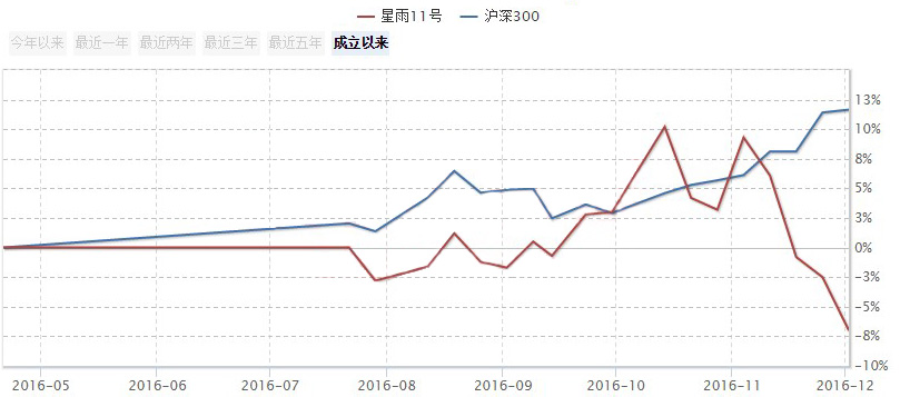 在11月沪指一路攀升、“中字头”、“高转送”等主题投资机会热点接连不断的情况下,“星雨11号”产品净值曲线却急转直下,不仅没有跑赢大盘,连控制仓位和止损的风控举措也没有体现出来。