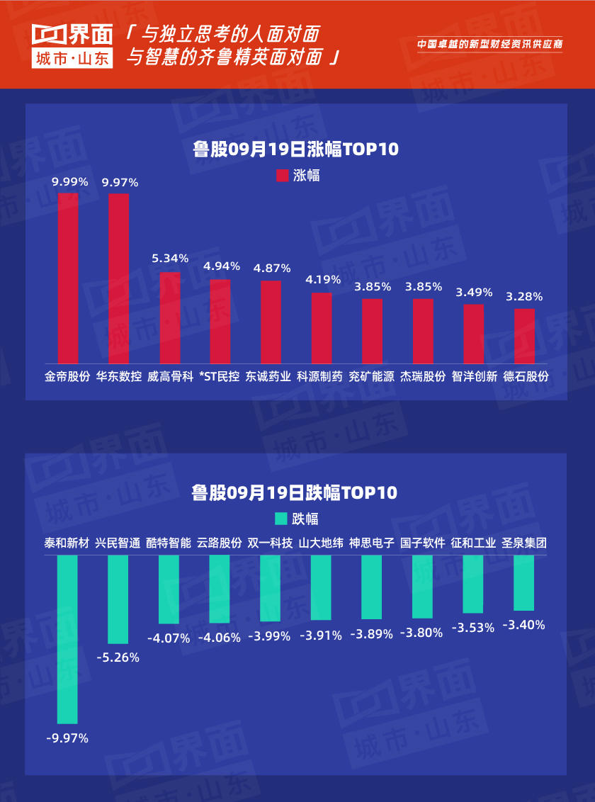 9月19日,山东77只个股上涨,215只个股下跌。