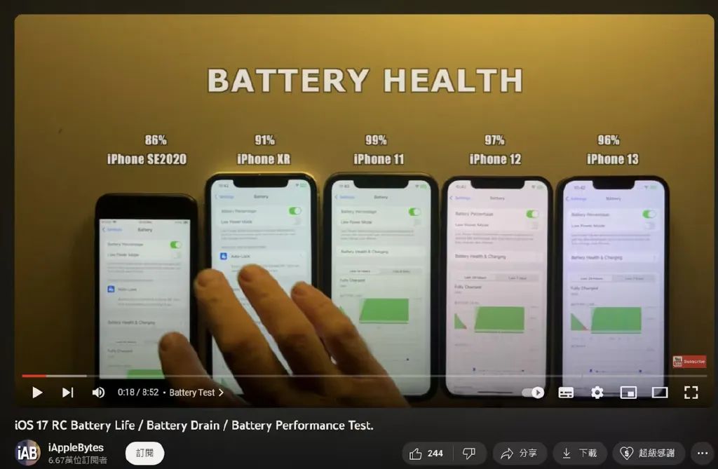 测试了:iPhone SE 2、iPhone XR、iPhone 11、iPhone 12 及 iPhone 13,最终结论:“所有旧款机型续航均有所降低”。