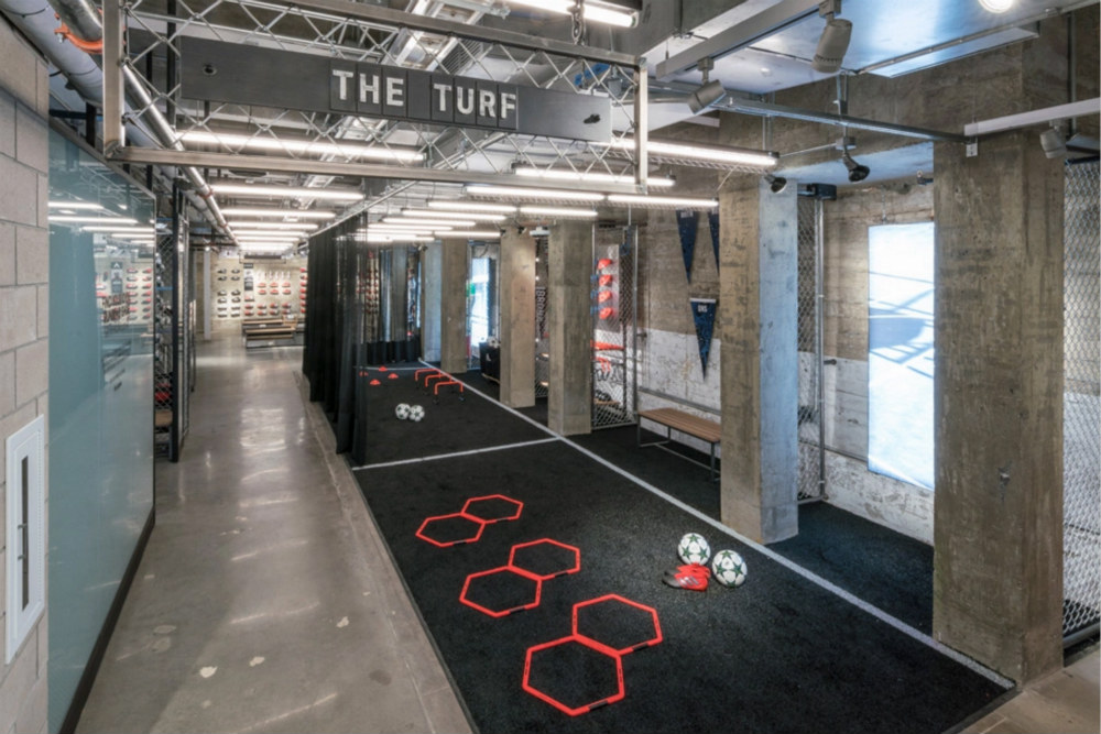 Coach不久前在第五大道开设的新店中提供定制服务,并安置了皮革手工作坊;相隔不远的adidas旗舰店占地4.5万平方英尺,更像一座风格粗粝的体育馆,不光开辟了定制工作室,还有果汁吧、健身书籍。