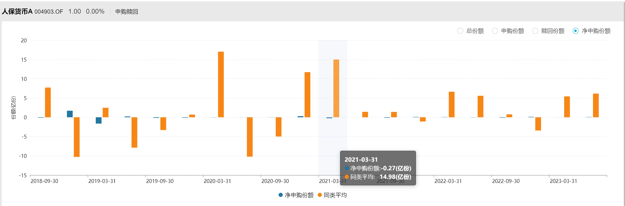 拿下公募牌照后,人保资产发行的首支公募基金产品即为人保货币。人保货币于2017年8月正式成立,募集期内净认购金额47.99亿元,但一年以后,人保货币的基金规模就做到了364.82亿元的历史最高值。