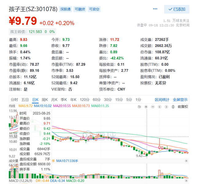 回购股份的数量甚至不及高瓴资本减持的零头,这种情况下,孩子王的股价自然难以有起色。到今年8月底,其股价一度触及9.42元,创造了历史新低。
