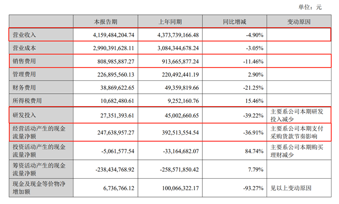 为了缓解业绩下滑的压力,上半年,孩子王有意识地缩减了开支。最明显的当属研发投入,从4500.3万元降至2735.1万元,同比缩减了39.22%;销售费用也相应进行了收缩,从9.14亿元降至8.09亿元,同比缩减了11.46%。得益于此,上半年孩子王的归属净利润6955.16万元,同比增长3.9%。
