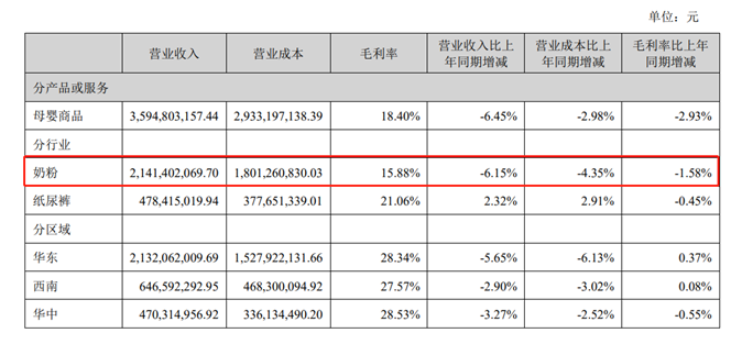 可见孩子王仍然在逆势持续扩张。然而,其所处的母婴赛道,正在面临不小的压力。尼尔森IQ数据显示,截至2023年第二季度末的12个月里,母婴用品全渠道销售额下滑了9.5%,其中线上渠道销售额增长了1%,而线下渠道销售额下降了13.5%。行业下行压力下,孩子王自然难以独善其身,从财报透露的信息看,其主营的奶粉业务,收入同比下滑6.15%。