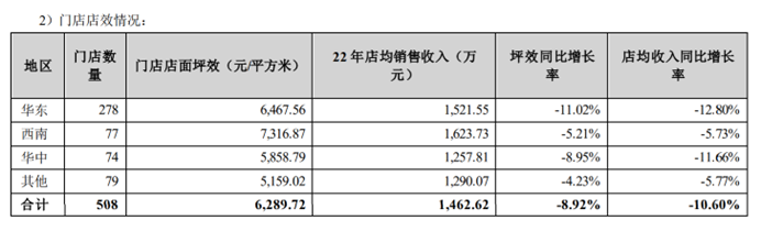 各区域门店坪效均下滑