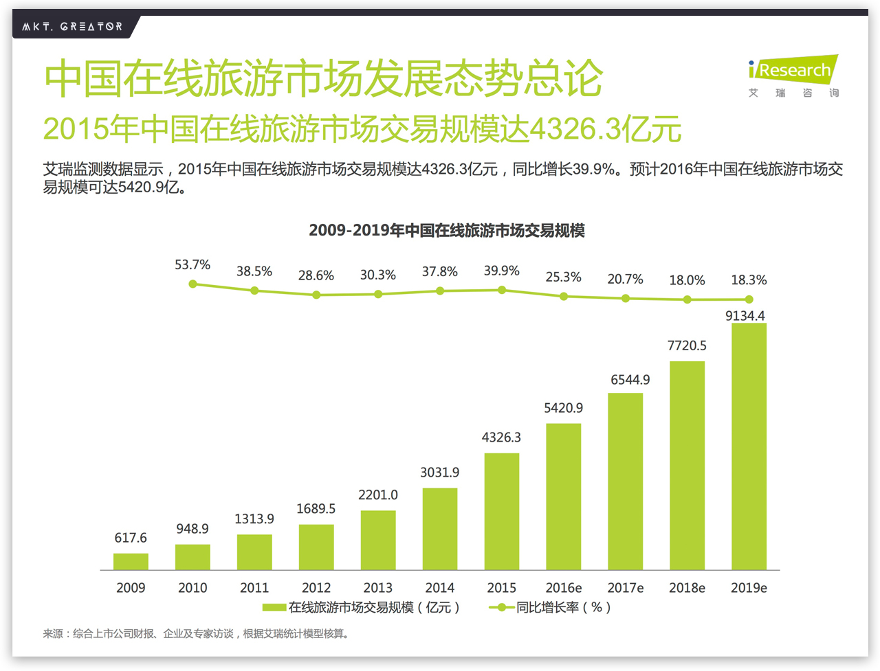 2015年,中国在线旅游市场交易规模达到4326.3亿元。艾瑞咨询预计,2016年全年会达到5420.9亿元,2019年交易规模会超过9000亿元,直逼万亿元大关。