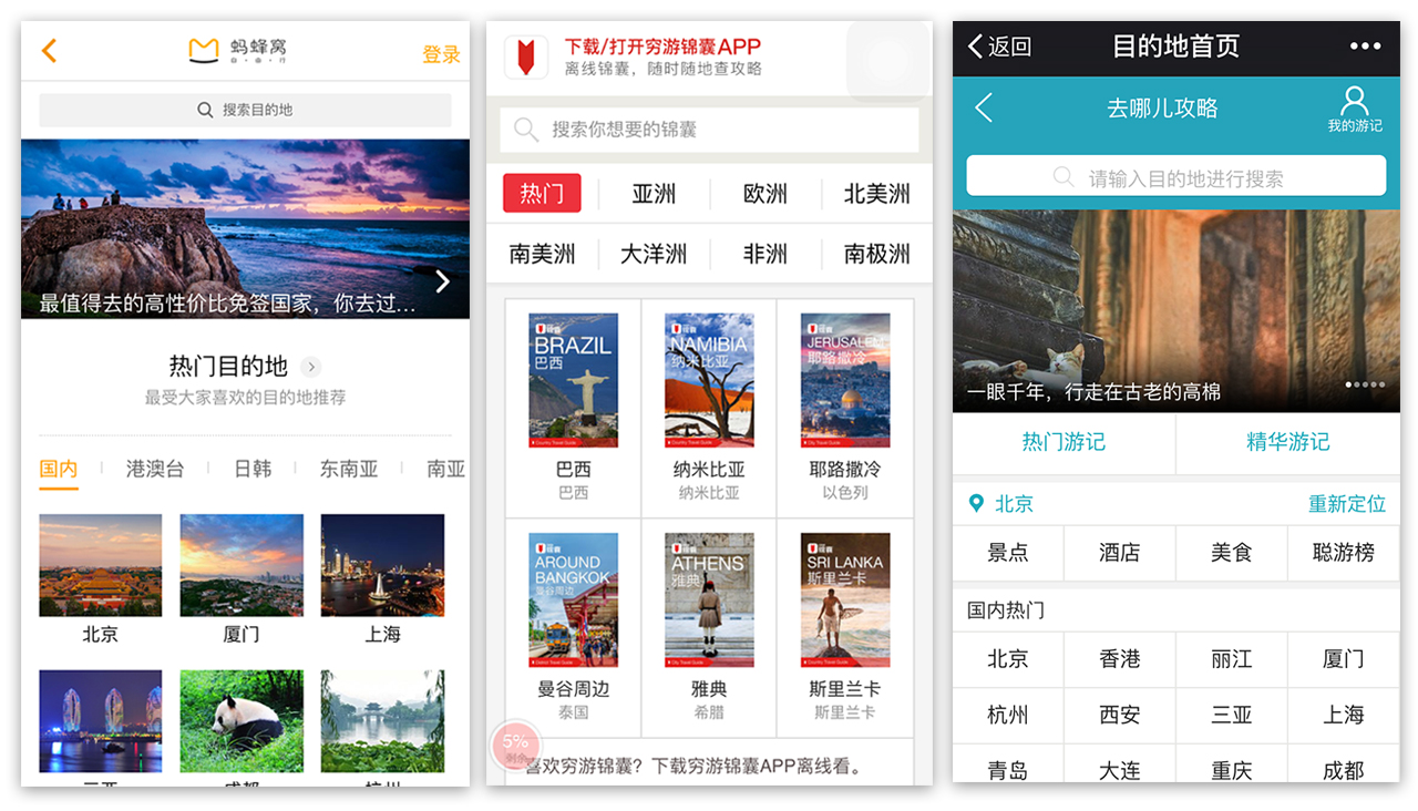 连传统OTA去哪儿网都有600万篇攻略游记。更不用提以攻略内容起家的旅游社区,像蚂蜂窝“目的地攻略”、穷游网“穷游锦囊”,质量高、覆盖范围广,被奉为攻略圣经。