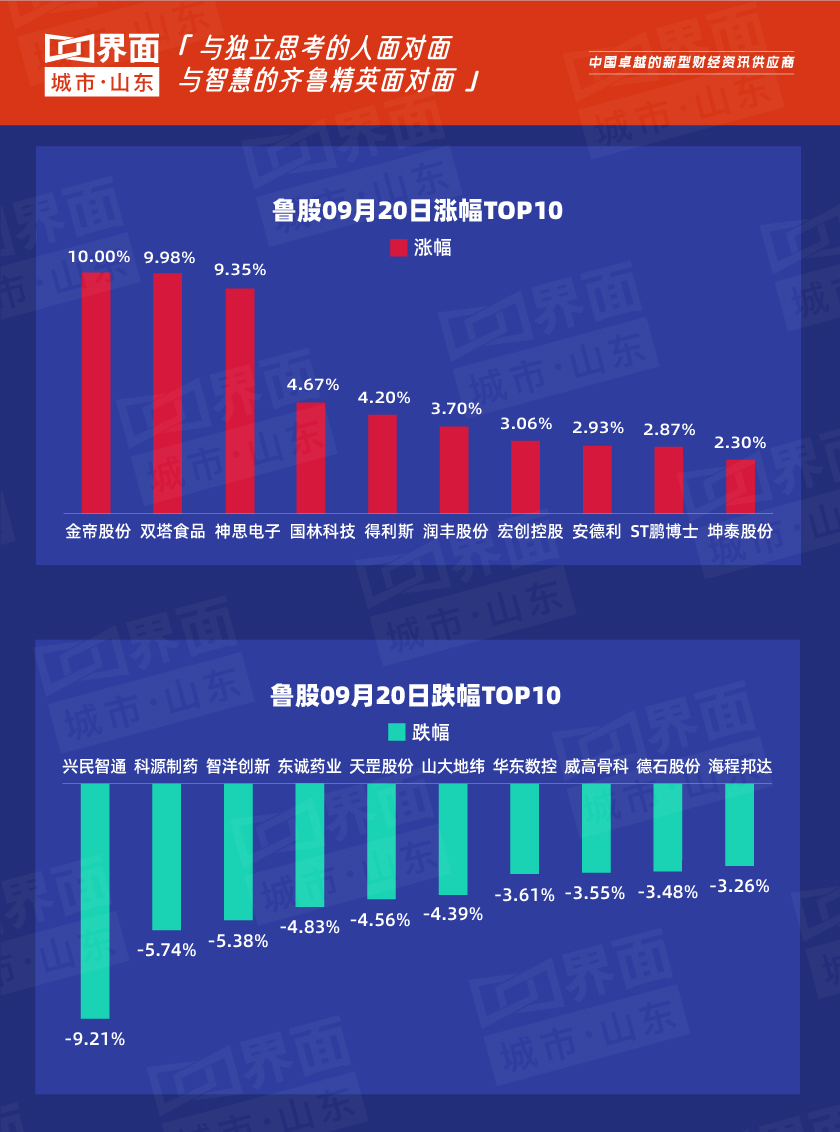 9月20日,山东77只个股上涨,12股持平,217只下跌。