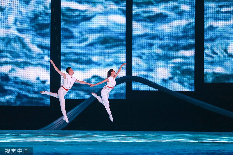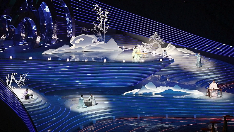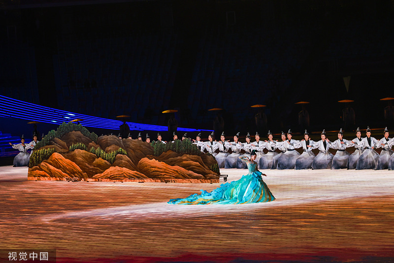 陆川:其实看点很多。舞蹈和地屏影像的结合是我觉得特别美轮美奂的部分。这次地屏影像的配合也非常高级,影像制作的水准很高。虽然开幕式时间没有那么长,我们一直在压缩时间,为了节约(的宗旨),但我觉得是一场很精彩的文艺演出。