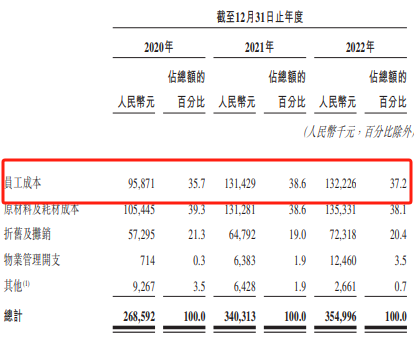 数据显示,2020年至2022年马泷齿科员工成本支出分别为9587.1万元、1.31亿元、1.32亿元。