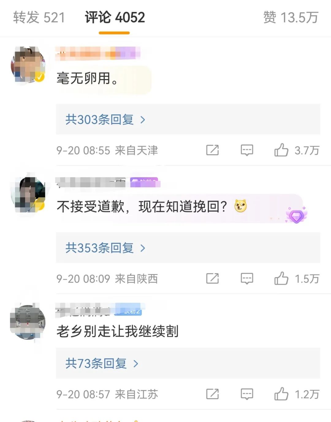 “说句不好听的,吃席还赶趟呢,事发24小时内是黄金处理时间,再不济前3天也还有救,现在过去9天了,人都不聊你了,负面影响已经显露得淋漓尽致了,这时候出来发言,图啥?”kony感慨。