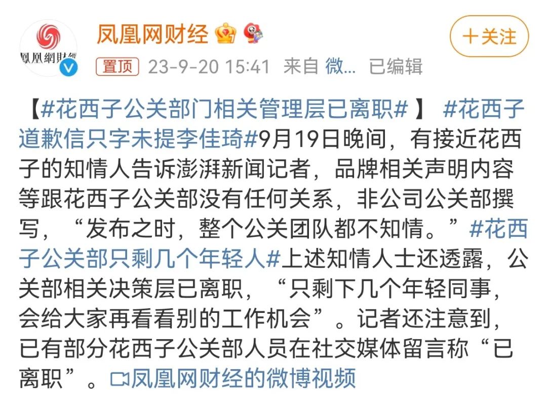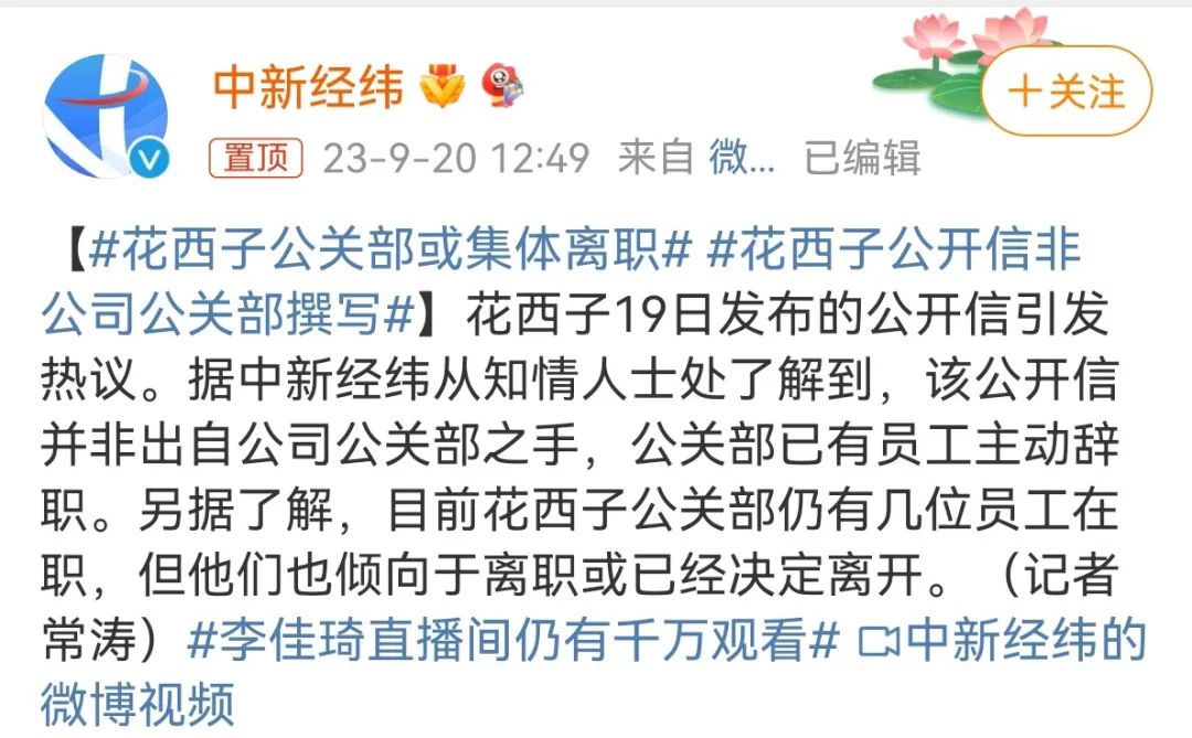 一天时间内,负面舆情还在持续发酵,“花西子自称是地地道道的国货”、“花西子道歉不够真诚不够实在”、“花西子道歉信无需反复强调自己是国货”等负面话题词相继登上热搜。同时,今天,大量关于本次危机公关操盘手的探讨出现,有业内知情人士向中新经纬表明,花西子本次的公开信并非出自其公司公关部,同时,公关部已有员工主动辞职,团队或将面临集体大换血。