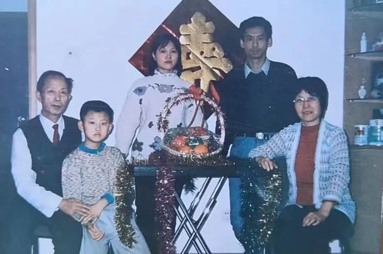 ▲姥爷70大寿时,蔡沐华一家三口和老人的合影。图 /受访者提供
