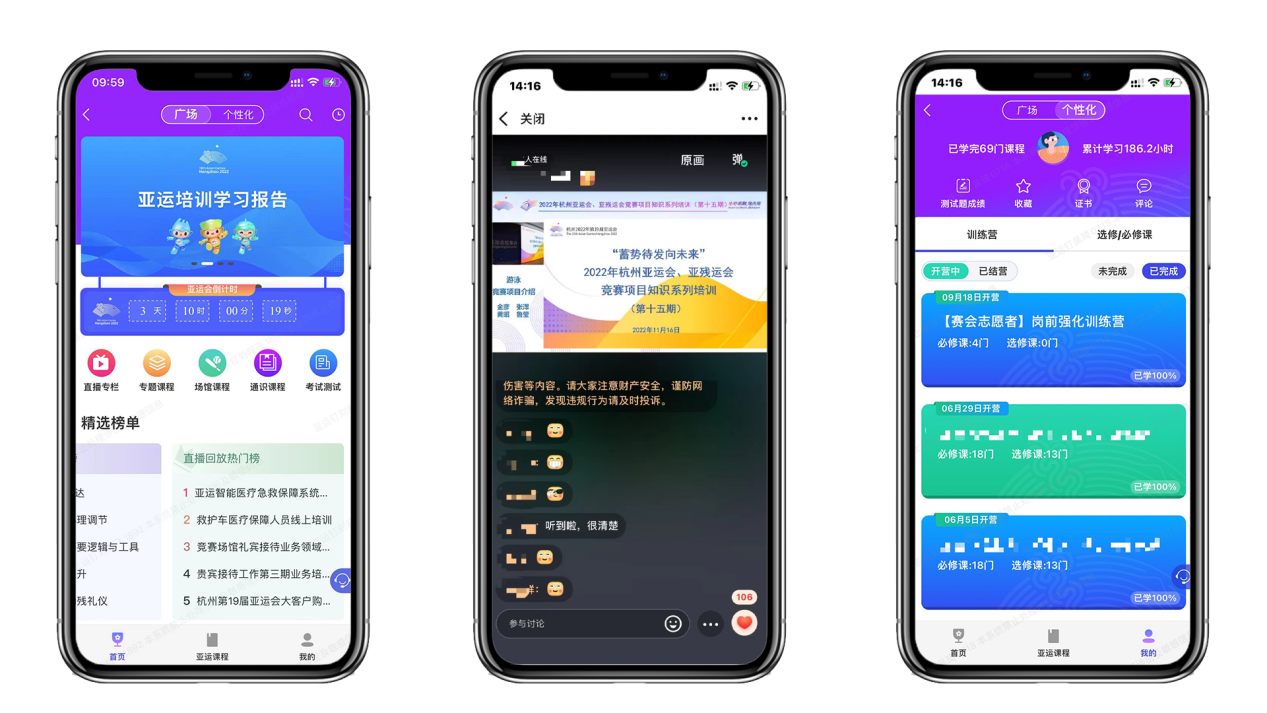 平台有效解决了跨地域人员同步培训的问题,极大提升了培训效率,降低了组织成本,也为参训人员提供了灵活、自主的学习工具。截至目前,亚运培训平台已汇集260余门课程,逾170位讲师参与授课,课程总时长达12282分钟,约16万人次用户在此学习,累计学习时长达25万小时。
