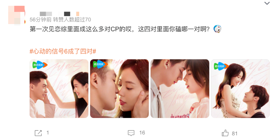 毕竟,有一句调侃的话是“人的本质是嗑CP”,更何况恋综能提供给观众多条情感线以“嗑生嗑死”。