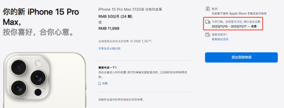 当然,A17 Pro的拉胯,对iPhone 15 Pro系列热销,不会有太大影响——现在去官网下单,预计送达日期已经排到了11月中旬。