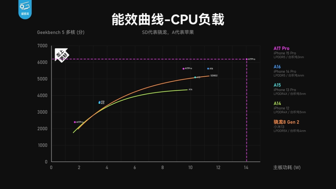 而在同频下的能耗比,A17 Pro相比A16,几乎没啥进步。