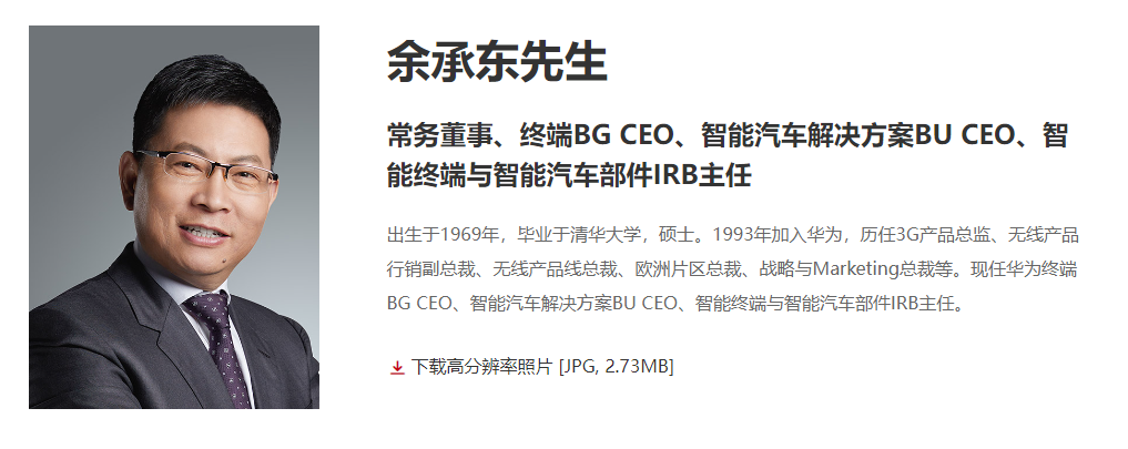 华为终端BG CEO、智能汽车解决方案BU董事长,余承东