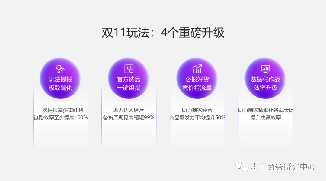 快手电商大促产品负责人彭康淳表示,此次双11快手电商进行四个重磅升级,分别为玩法报名效率升级、官方选品一键组货、必报好货竞价得流量和数据化作战效率升级。