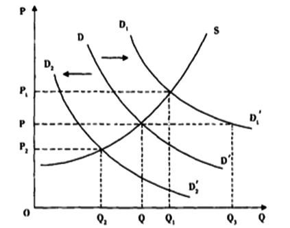 而当经济周期处于滞胀期时,消费者降低消费预算,尤其是降低对可消费品的预算,这时候DD'曲线左移为D D ’,新的需求曲线与供给曲线曲线S,给出新的供需平衡点——更低的价格P ,更少的数量Q 。