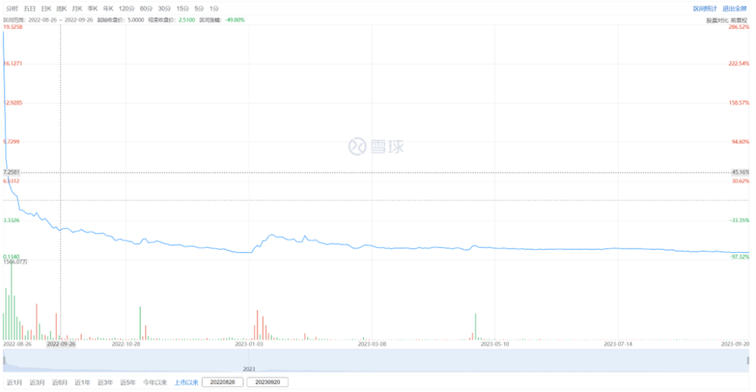 2022年8月,见知教育的上市之路终于有了转机。8月26日晚间,见知教育成功登陆纳斯达克市场。发行价最终定于5美元/ADS,开盘后,股价上演惊人一幕:最高涨至186.01美元,较发行价上涨达3620.2%,多次触发熔断。虽然之后股价有所回落,但最终还是报收18.75美元,涨幅达275%。
