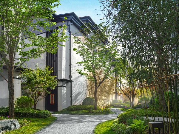 建筑单体是L型设计,杜绝北屋的产生,同时满足无走廊零浪费的设计基础,加上院落就天然围合成为一个内外不对视,有私密性和安全感的别墅,合院精髓其实就是一个“合”字,所有家庭成员合在一起,人与自然合在一起,建筑与光线合在一起。