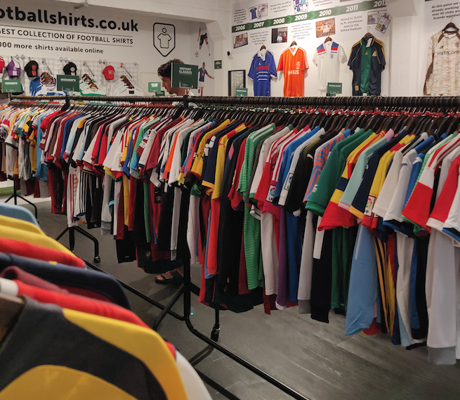 尽管如此,因为有利可图,Chris还是做起了二手 Vintage 球衣的收藏和售卖生意。在他的摊位上还有他从欧洲各处收刮的古董球衣,价格在 300 英镑以上。
