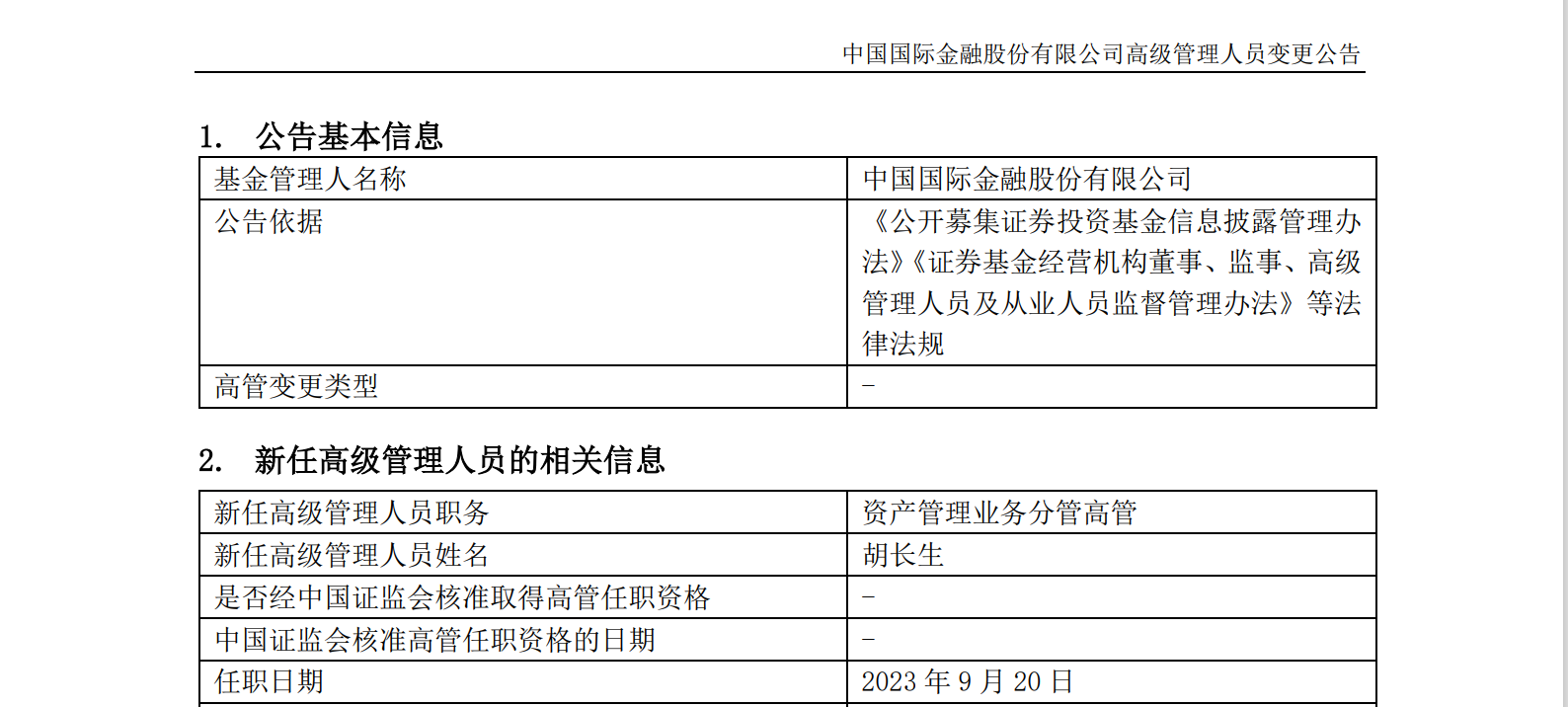 9月22日,中金公司(601995.SH)发布资产管理部高管变更公告。胡长生、孙男(协助分管)新任资产管理业务分管高管,原资产管理业务分管高管徐翌成转任协助负责公司工会工作。三位高管的交接时间为9月20日。