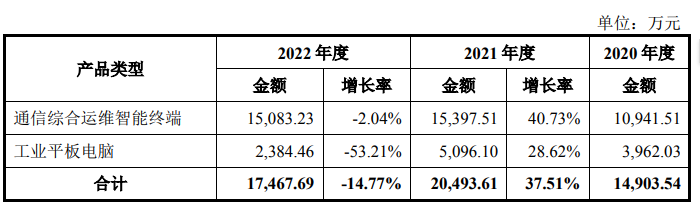 2022年山东信通工业平板电脑销售额为2384.46万元,较2021年同比大幅下滑53.21%。