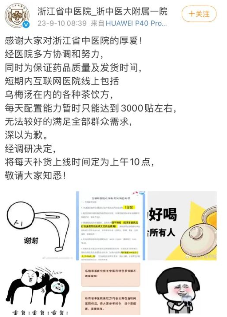 由于访问量过大,造成了浙江省中医院服务器的瘫痪。浙江省中医院为此发公告称,目前酸梅汤供不应求,为保证药品质量暂缓供应,医院正在协调中,预计备货需要3天。