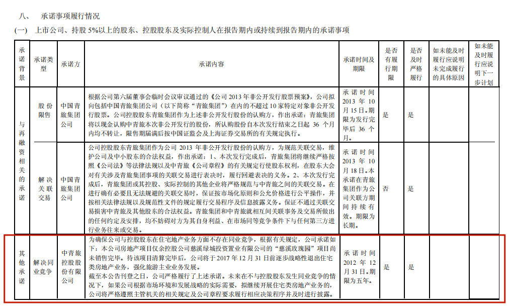 2017年11月,这一漫长的避嫌期结束。中青旅发布公告称,公司与控股股东之间在住宅类房地产业务方面已实际不存在同业竞争问题,公司豁免履行该承诺。换言之,中青旅已拿到了地产业的“入场资格券”。