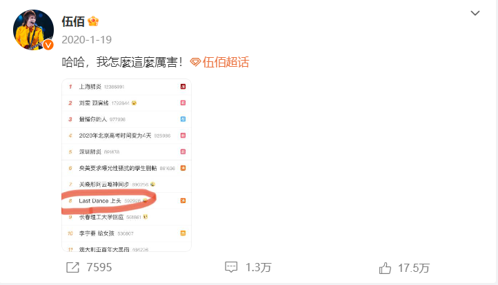 前几年,伍佰开通了微博,话题榜上出现自己的名字,他会“赶快圈起来”;#Last dance上头#登上热搜,他发博感叹“我怎么这么厉害啊”;乐迷调侃他演唱会不用唱歌,他还会试图辩解“这不是事实,我有唱”。