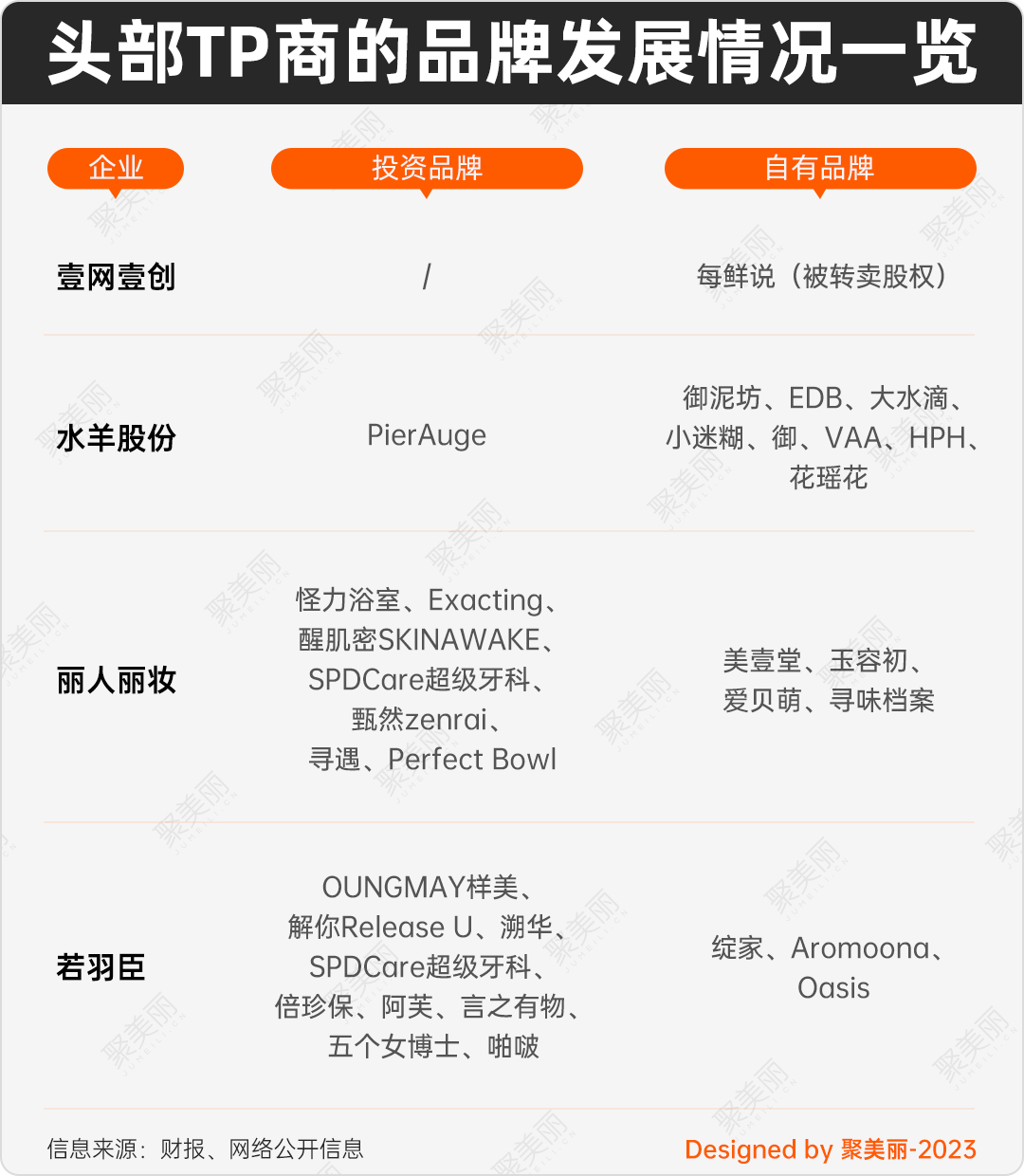 如,2020-2022年丽人丽妆的合作品牌数目一直原地踏步,保持在60余个品牌;壹网壹创的自有品牌每鲜说由于经营不善被转卖股权;水羊股份在2022年财报中指出,营业收入、净利润以及归母净利润下滑的主要原因是外部不良因素的影响,以及公司自有品牌升级暂未实现充分效益。