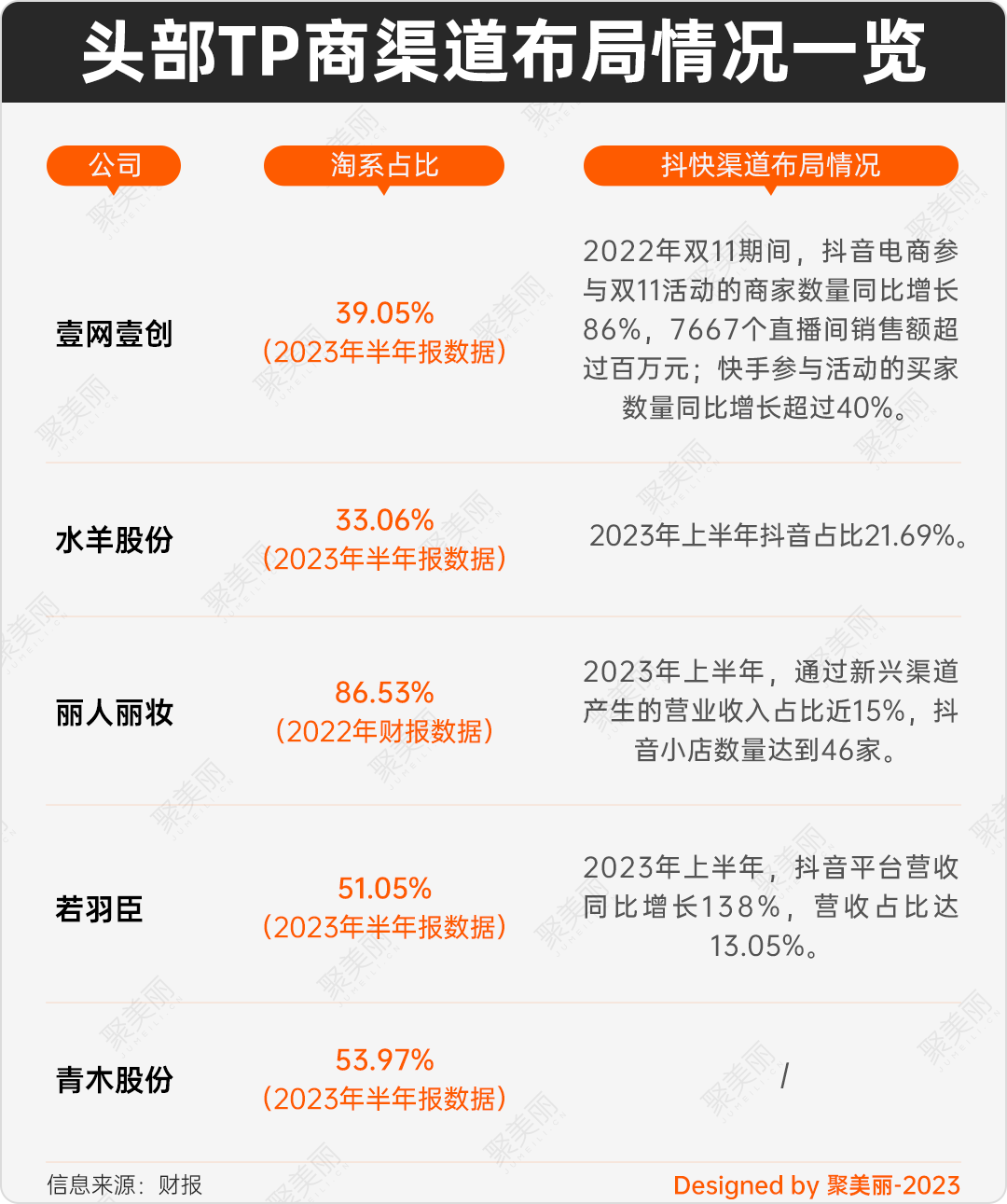如,青木股份在2021年时便特意成立子公司旺兔柏专注抖音运营;水羊股份在2020年底成立了电商直播MCN机构水羊新媒,围绕美妆、个护、母婴等领域承接国内外品牌的达人直播、官方自播、影视植入以及明星合作业务,近日水羊股份还对外宣布,董事长戴跃锋在二季度开始接管抖音渠道业务进行调整;若羽臣则是在2022年便投资了抖音头部DP魔范璐玛,加码抖音生态服务能力。