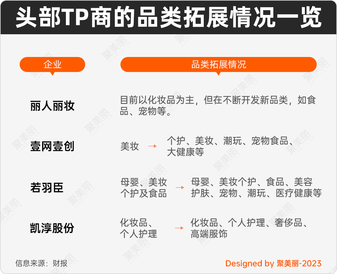 比如,凯淳股份在传统优势的化妆品和个人护理类目外,将奢侈品和高端服饰拓展成为公司第三个战略赛道;若羽臣在原有的母婴、美妆个护及食品领域之外,新拓展了美容护肤、宠物、潮玩、医疗健康等。