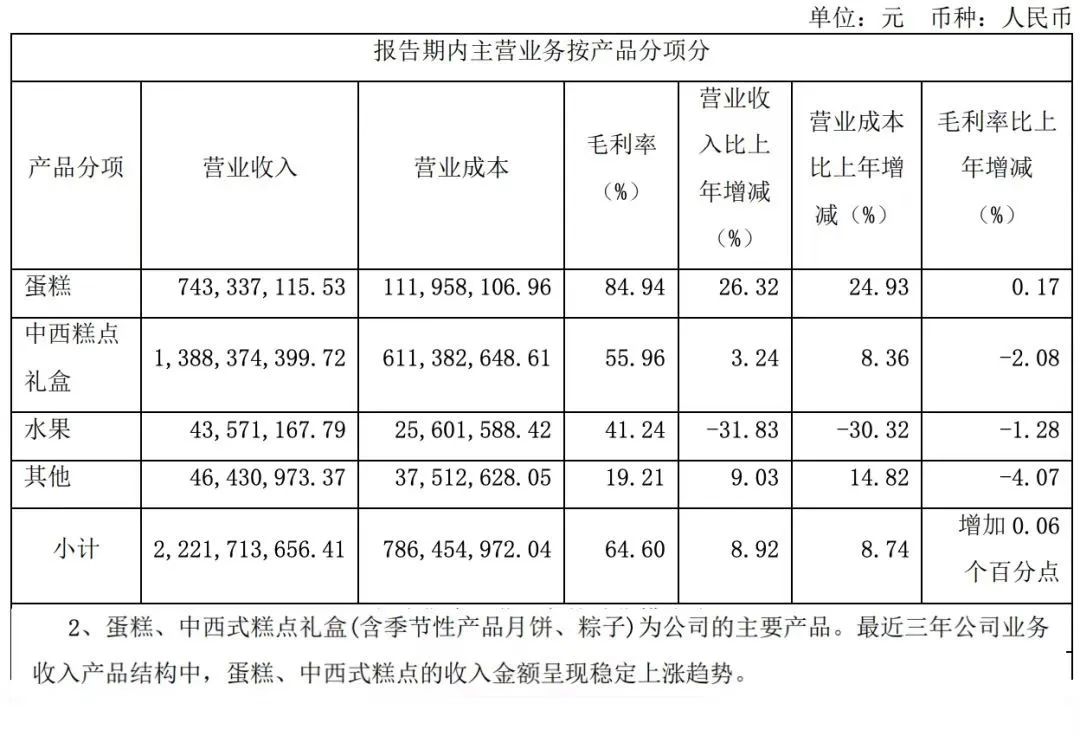 再看另一月饼龙头“元祖股份”,2019年时月饼礼盒收入就达到8.29亿元,毛利率为65.85%。到2020年,由于月饼合并到了一个板块里,虽然无法得知具体数字,但中西式糕点礼盒总收入达13.9亿元,毛利率为55.96%,这还是在受到疫情影响的情况下。