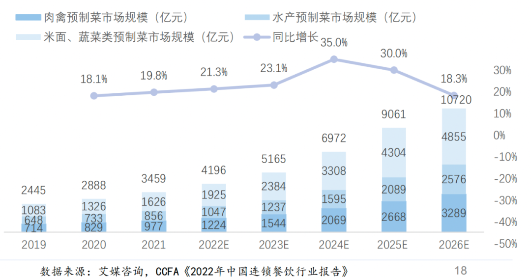 根据艾媒咨询报告,2022年中国预制菜市场规模将达4196亿元,2019年-2022年CAGR(复合年均增长率)约20%,2026年预计规模将达到10720亿元。