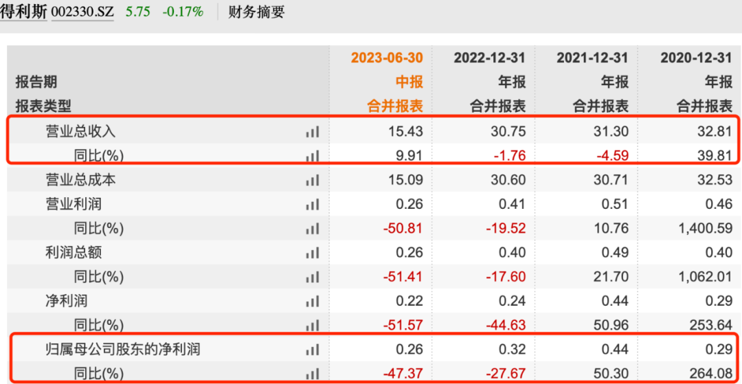 然而,淄博烧烤的火爆却并没有拉动得利斯的业绩。2023年上半年,公司的业绩再次下滑。