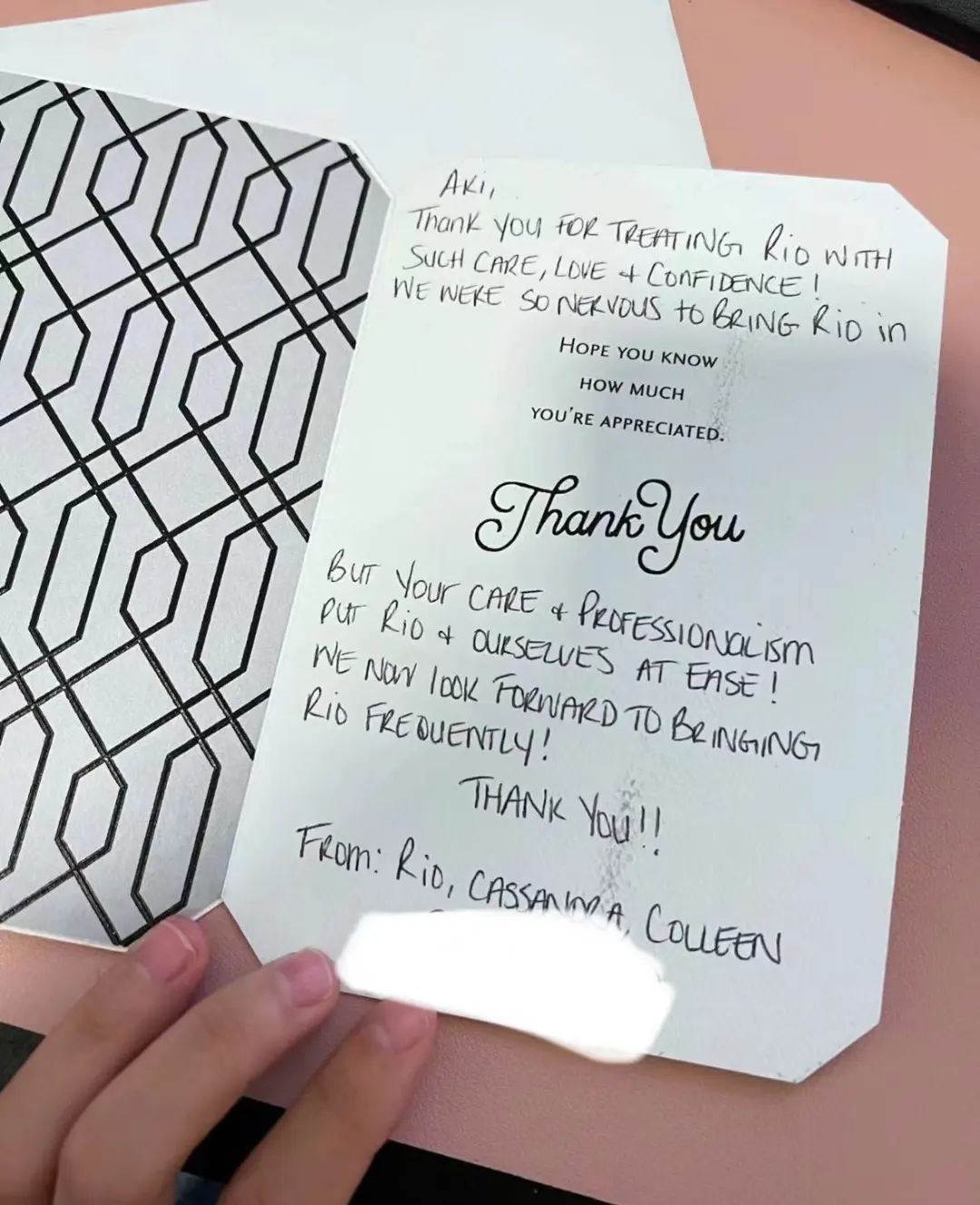 北北曾收到的感谢卡。图 / 受访者提供
