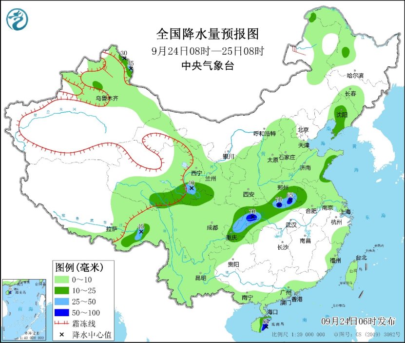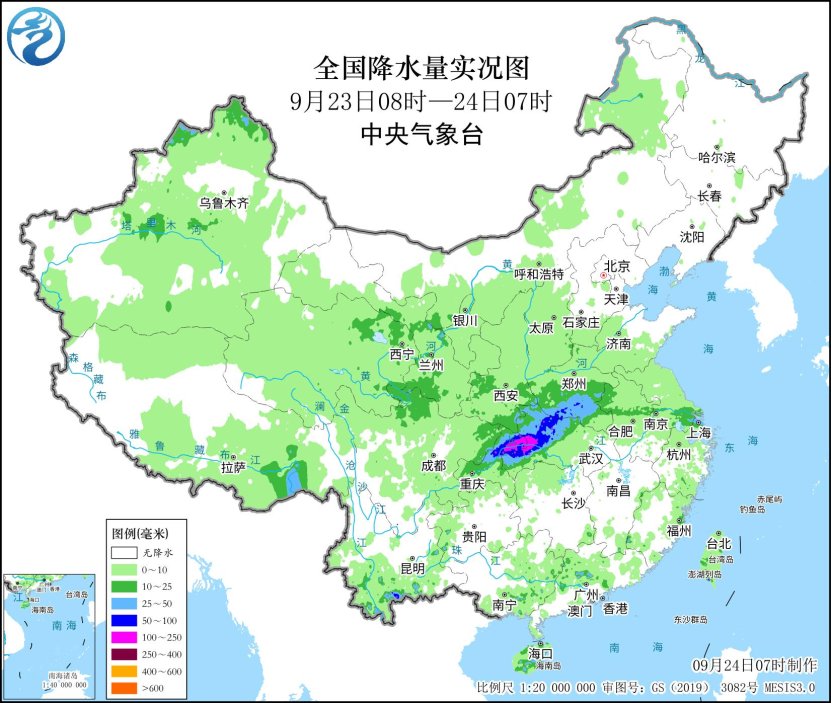 中央气象台9月24日消息,昨日,西藏东南部、云南南部、广西东南部、广东中部、海南岛东部和南部、重庆东北部、湖北西北部、河南南部、上海北部等地部分地区出现大雨或暴雨,重庆巫山、奉节、云阳,湖北恩施、宜昌,海南海口等地局地大暴雨;新疆北部及沿天山一带、甘肃中部等地部分地区出现中到大雨。