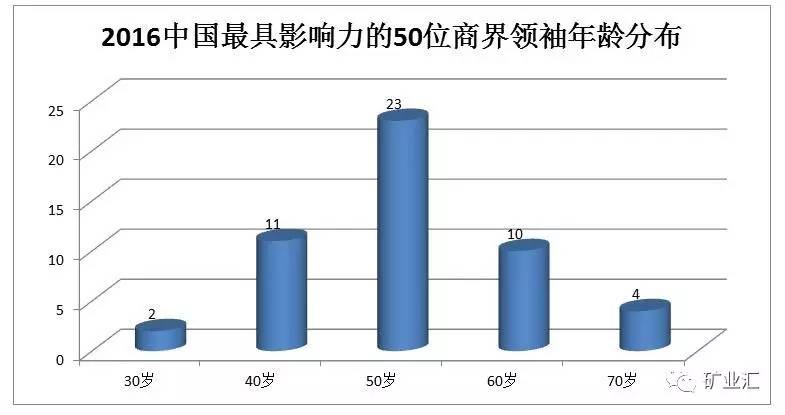 统计50位上榜人物年龄分布,如下图所示,其中在50岁级别CEO有23人,约占一半,30岁级别有两人,分别是滴滴出行首席执行官程维和美团大众点评网首席执行官王兴,其中滴滴出行首席执行官程维年龄只有33岁,为上榜CEO中年龄最小的CEO。