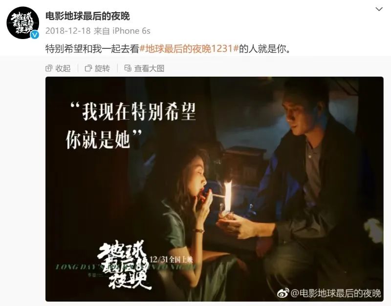 而真正的文艺片营销巅峰,就不得不提当年的《地球最后的夜晚》。一部文艺片在2018年底还未上映,光是预售就卖了一个亿。这种奇迹放到现在来看也是匪夷所思的。