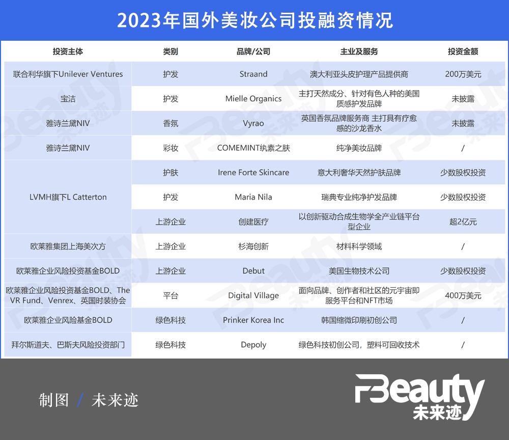 不只是欧莱雅集团,通过梳理2023年至今,美妆巨头们的投资情况发现,加码上游企业似乎是美妆巨头们的共识。