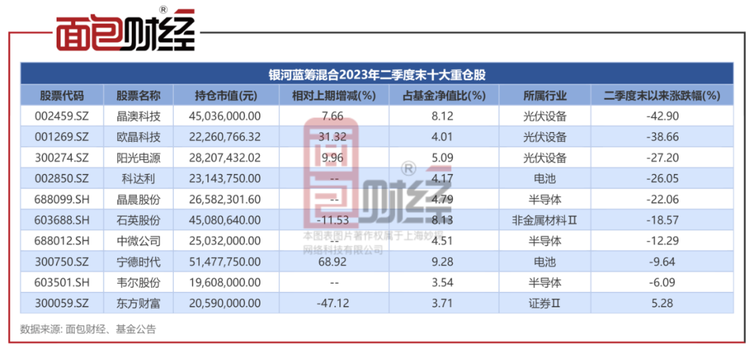 在二季度末以来市场整体表现分化的背景下,银河蓝筹混合的重仓股大部分录得下跌,其中晶澳科技、欧晶科技更是下跌超过30%。