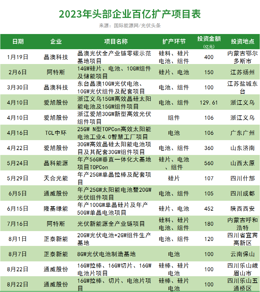 这些龙头企业多为上市公司,有广泛的融资渠道与较强的融资能力。同样在等待IPO之中的企业也不乏龙头企业,例如电池领域两家常年排名出货榜前五的企业润阳股份以及中润光能。