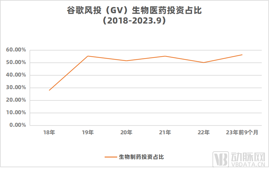 具体来看,自2019年后,生物医药成为GV最关注的医疗细分赛道,占比长期维持在50%以上。特别是2021年后,投资速度明显加快。近3年谷歌在生物医药领域共下注51次。