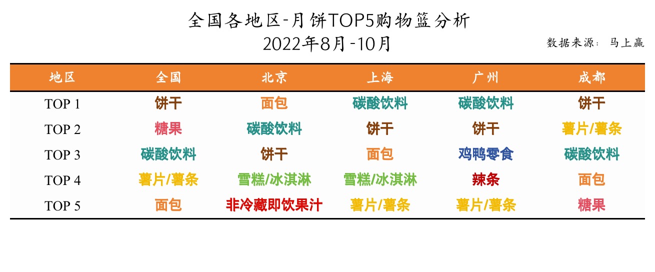 我们拉取了月饼同订单购买频率最高的5类商品