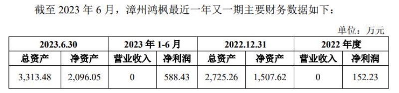 根据公告,本次交易对方漳州鸿枫主营农业科学研究和试验发展,以及对农业的投资。2022年度和2023年1-6月,漳州鸿枫的营业收入均为零,但仍有152.23万元和588.43万元的净利润。截至2023年6月30日,漳州鸿枫的总资产仅为3313.48万元,这跟目标公司的全部权益价值14.67亿元以及相应51%股权的本次交易对价相比,相差很远。这将涉及漳州鸿枫后续如何筹集股权转让支付对价所需资金的问题。