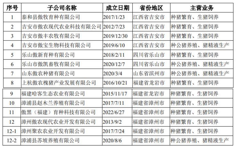 傲芯生物作为控股平台,通过十几家下属子公司开展生猪育种业务。从傲芯生物各下属子公司的成立时间看,若目标公司傲芯生物成立于2023年6月2日的披露是准确的,那么,这些子公司成立日期均早于目标公司,然后再“装入”目标公司。傲芯生物的资本结构、净资产状况也在诸多子公司的基础上形成。